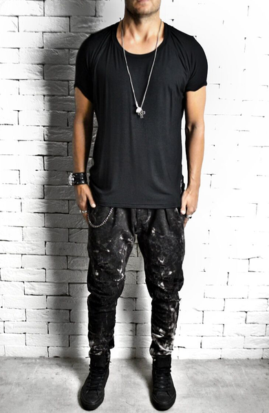 - Wear the Roll Shoulder T-Shirt with our collection of Drop Crotch Jeans available here
