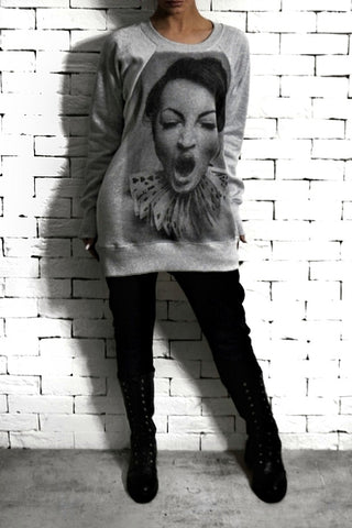 Clown Girl Raglan Sleeve Sweatshirt - Grey