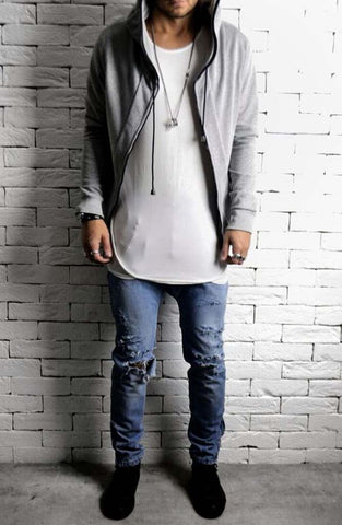 Directional Batwing Zipped Hoodie - Grey