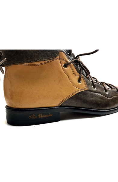 - The Alex Christopher 2 Tone Boot is made using 100% leather and hand crafted in the UK. Complete in a signature AC style the boots feature a double lace up and square front.