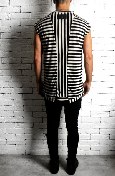 Cap Sleeve T-Shirt - Black/Cream Stripe