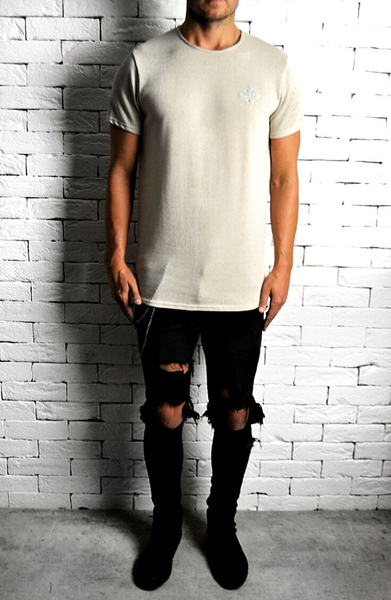 Cream Curve Hem T-Shirt | Mens T-Shirts | ETTO Boutique