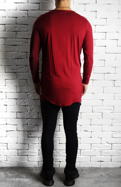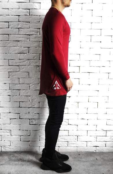 Directional Piped Long Sleeve T-Shirt - Maroon