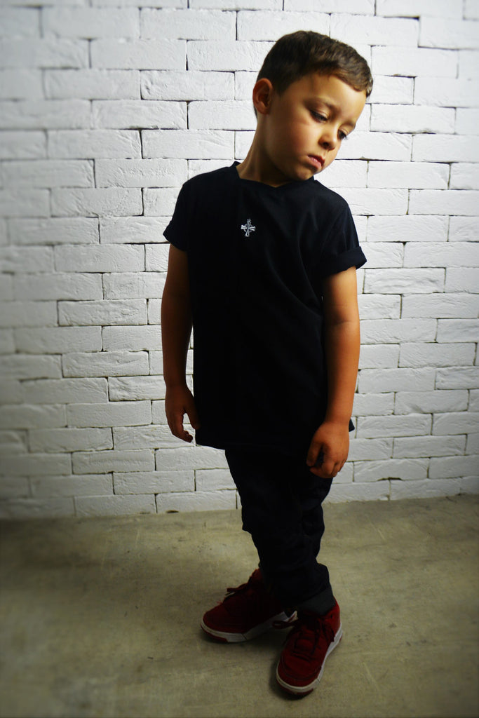 Introducing the new Kids Collection, the square neck t-shirt, made with 97% Cotton and 3% elastane featuring Alex Christopher embroidered logo central of the t-shirt.