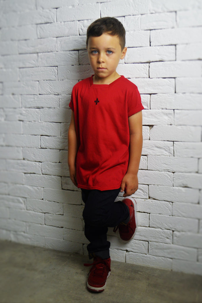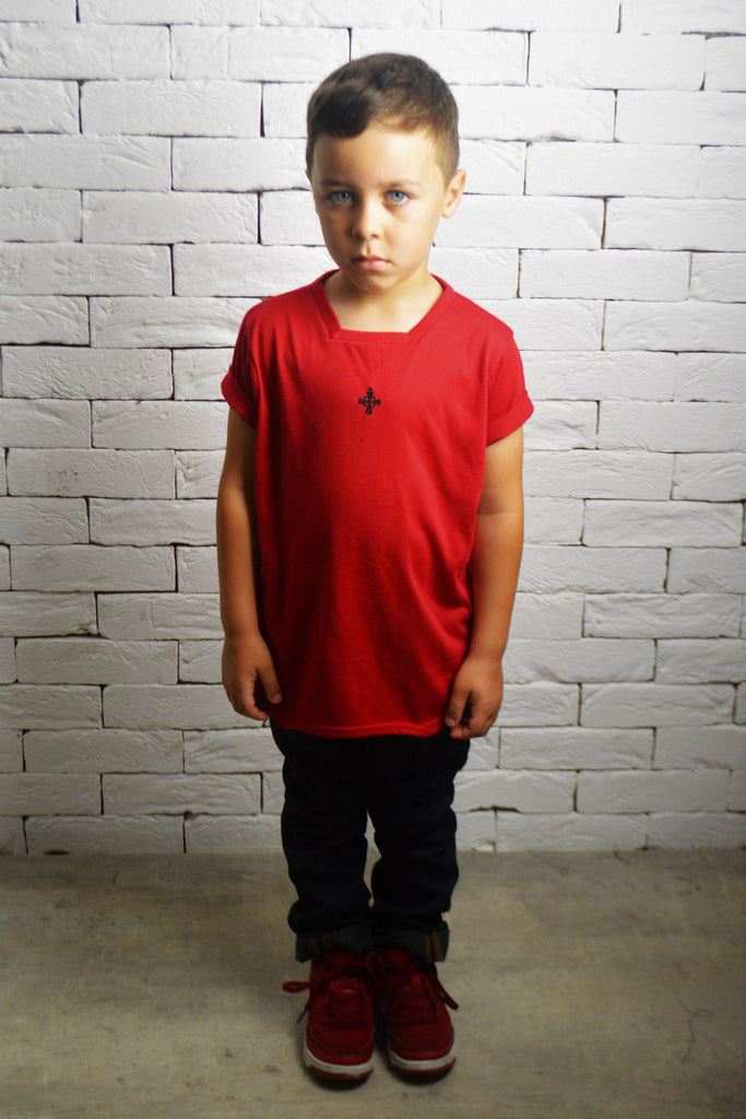 Kids Square Neck T-Shirt - Red