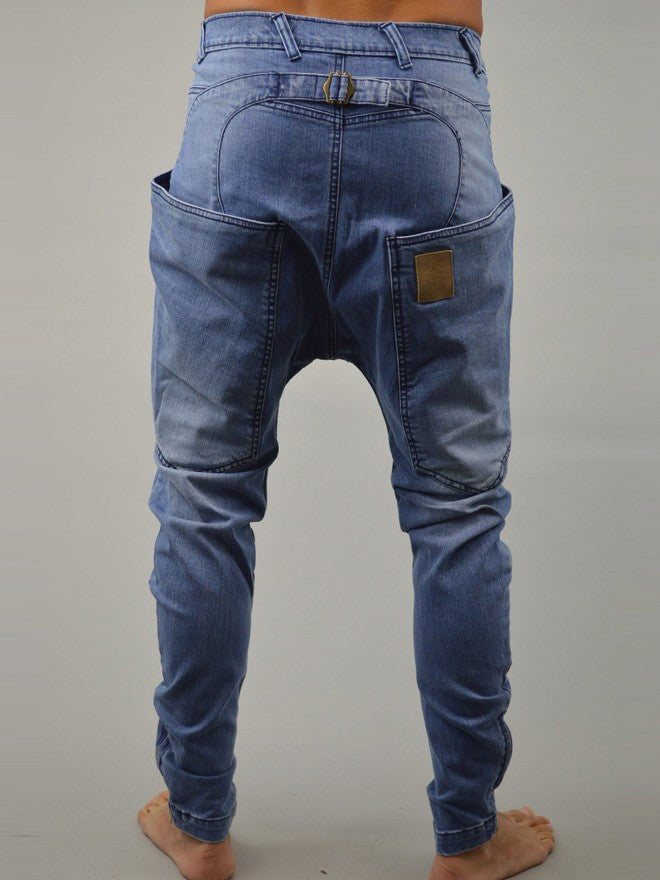 The Alex Christopher Side Pocket Jeans are crafted in a bleached blue denim. Featuring big pockets which extend from the front to the back with a buckle waist band and belt hoops. On the hem are zips which can be adjusted for comfort. Situated on the back of the jeans is the leather brand badge