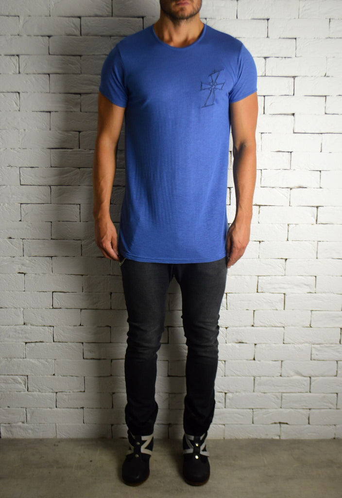 ALEX CHRISTOPHER Sketch Logo Side Print T- Blue